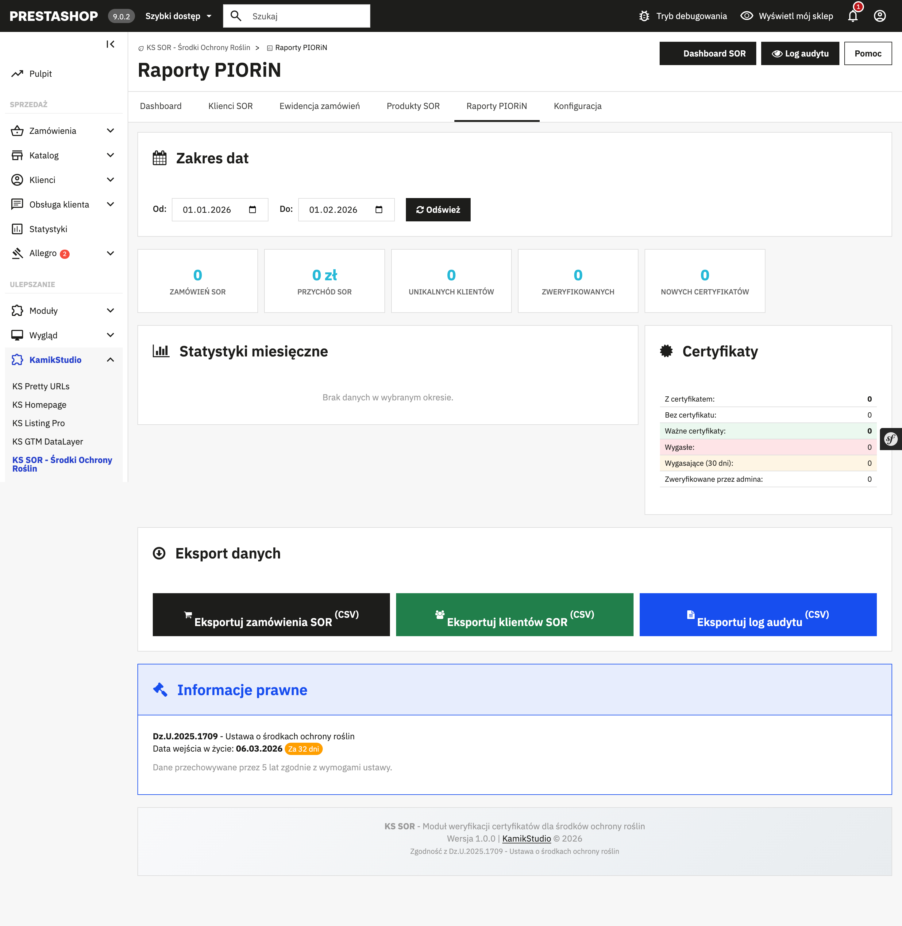 KS SOR to pierwszy stabilny moduł do obsługi ustawy o ŚOR, który jest w pełni kompatybilny z PrestaShop 9.x.